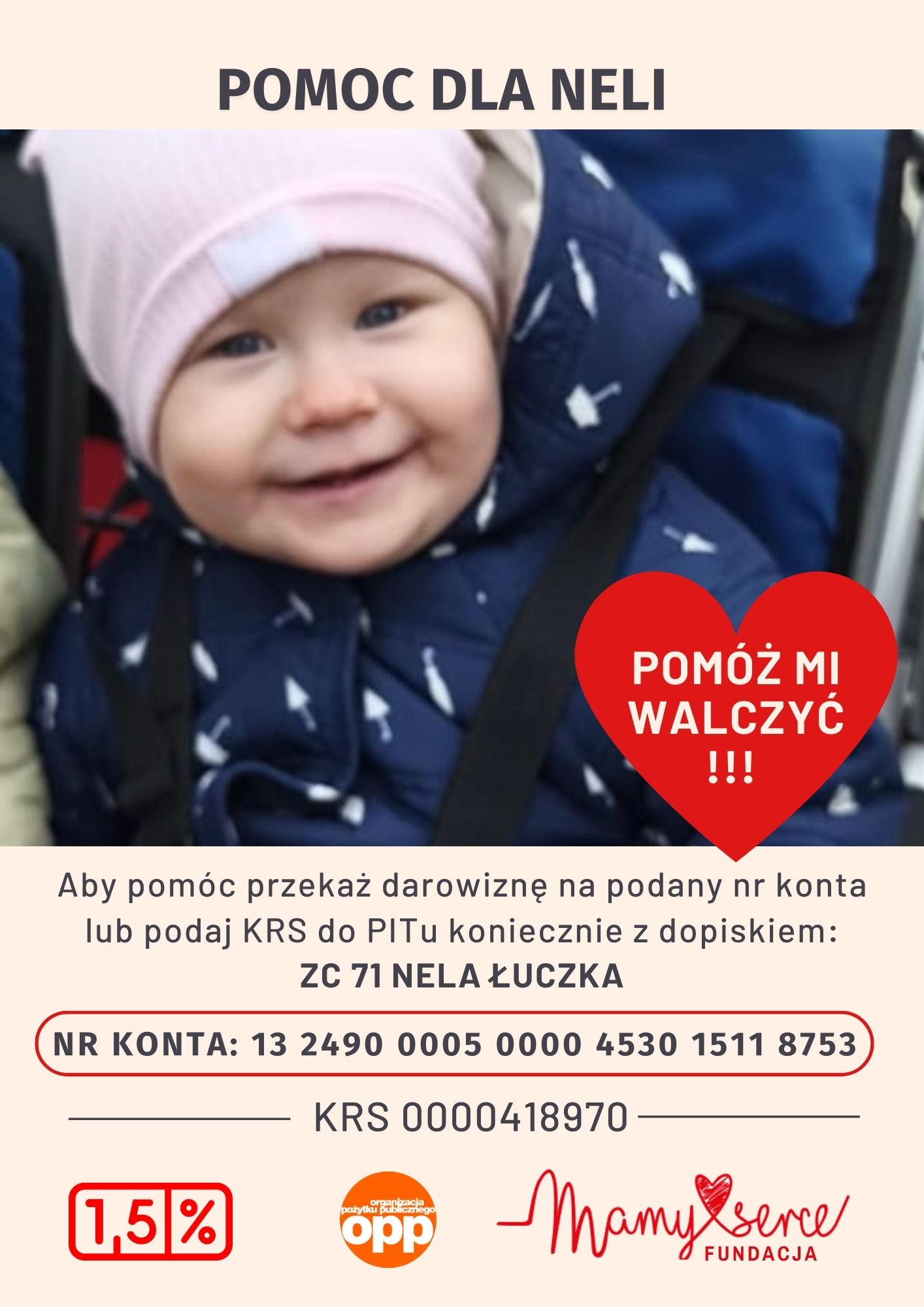Cześć, mam na imię Nela ,urodziłam się 10.05.2024r. z ciężką wadą serduszka HRHS z artezją zastawki trójdzielnej (niedorozwój prawego serca z zarośnięciem zastawki płucnej). Od urodzenia przebywałam w Instytucie Centrum Zdrowia Matki Polki w Łodzi, gdzie miałam podawany specjalny lek ,dzięki niemu mogłam przejść przez wszystkie badania i czekać na operację. 21.05.2024 r. odbyła się moja pierwsza planowana operacja zespolenia. Nie odbyło się bez komplikacji i miałam jeszcze kilka operacji nieplanowanych – przez dłuższy czas byłam pod respiratorem ,następnie wspomagano mnie jeszcze przez CPAP. Miałam również zabieg Rashkinda podczas cewnikowania serca. Po 2 długich i ciężkich miesiącach na chwilę przyjechałam do domu, ale przede mną kolejne 2 planowane operację, bardzo trudne czyli Glenn i Fontana.