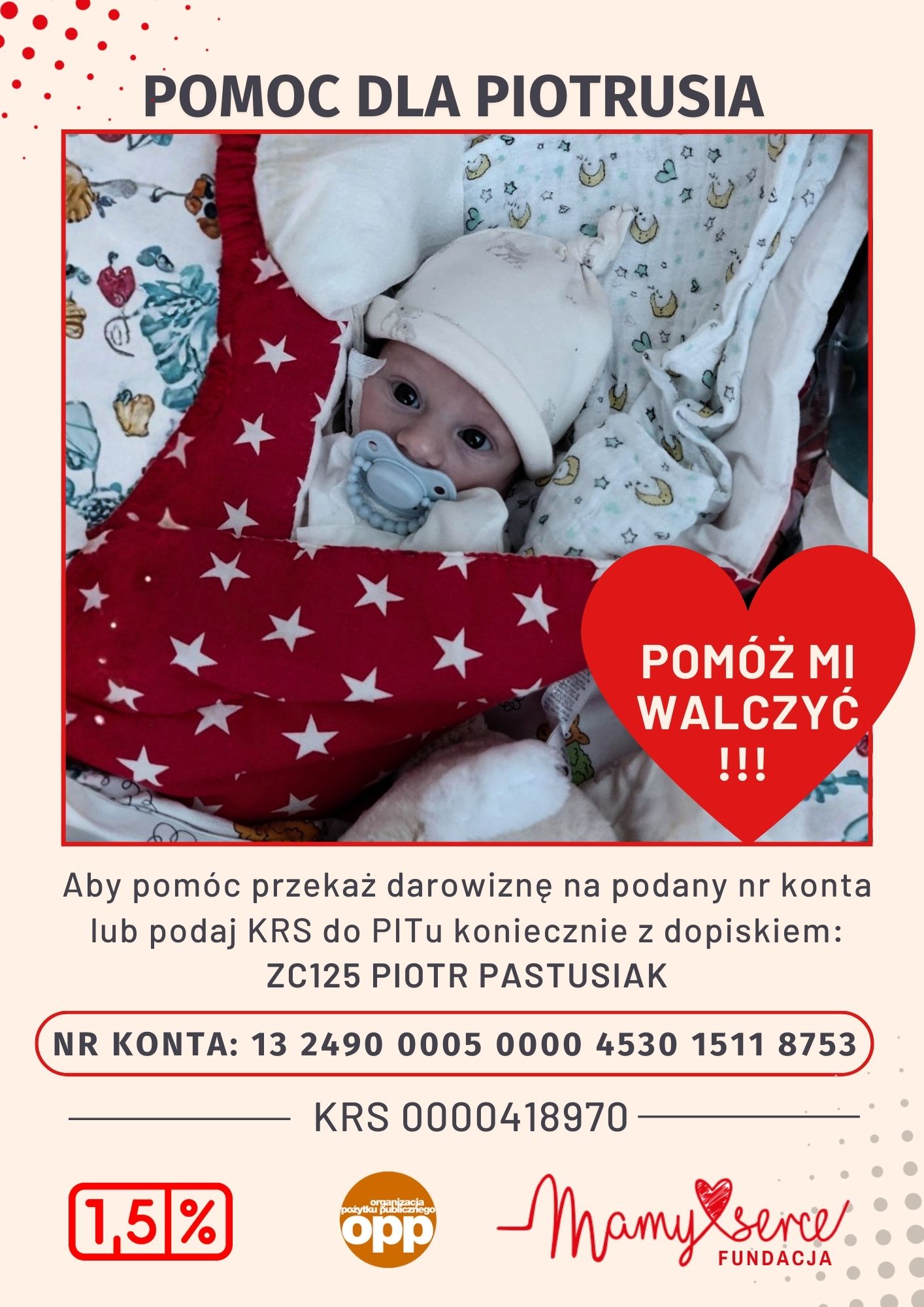 Wpłaty darowizn można dokonywać na konto imienne PIOTRUSIA