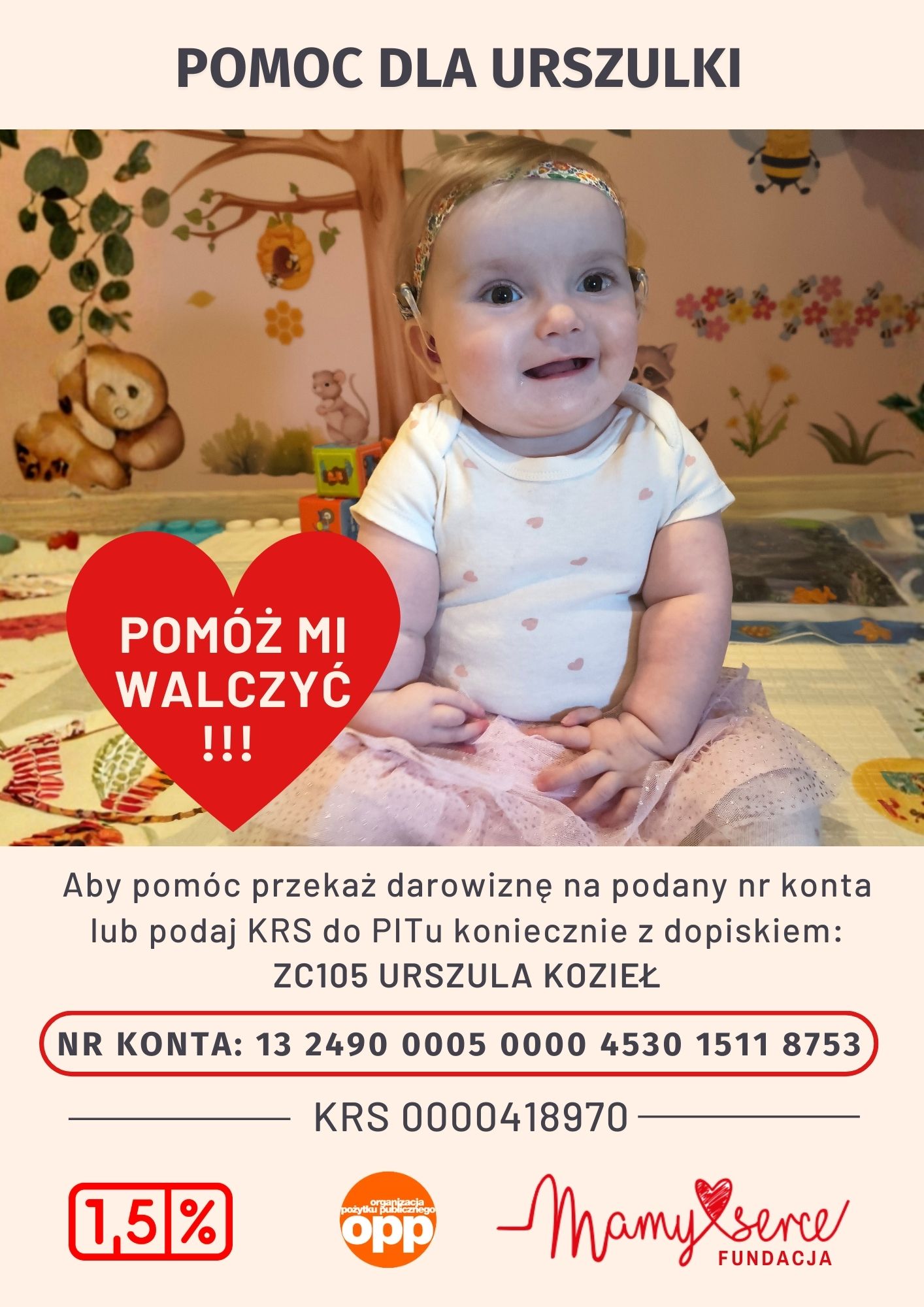 Dziękuję za każdą formę wsparcia. Urszulka wraz z rodzicami.